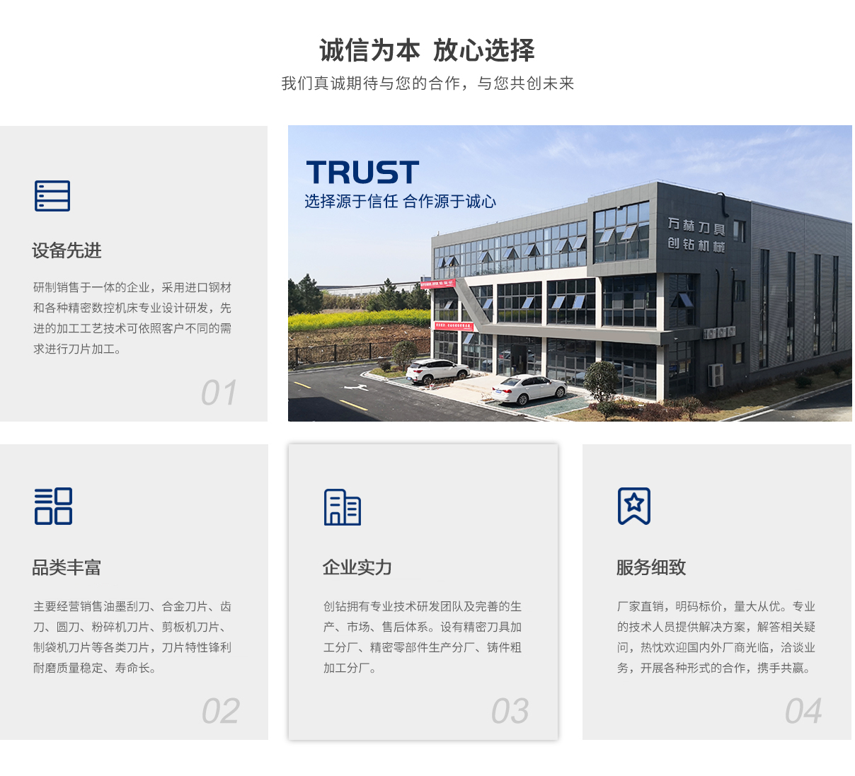 馬鞍山創(chuàng)鉆機械科技有限公司 INTRODUCTION 馬鞍山市創(chuàng)鉆機械科技有限公司(創(chuàng)鉆機械)坐落于鋼鐵之城-安徽馬鞍山,公司擁有專業(yè)的技術研發(fā)團隊及完善的生產、市場、售后體系。公司設有精密刀具加工分廠、精密零部件生產分廠、鑄件粗加工分廠,...